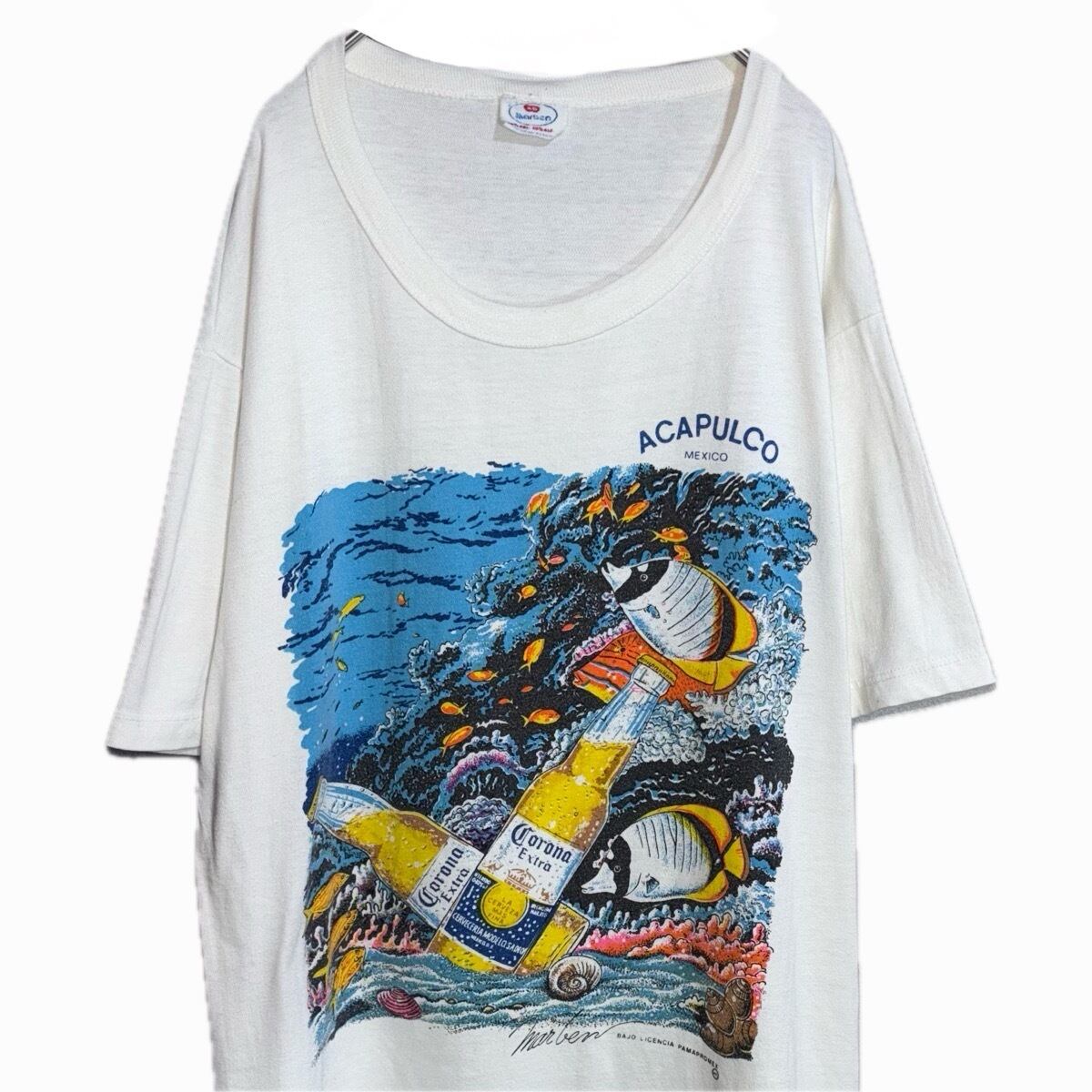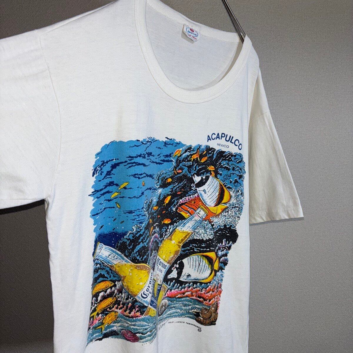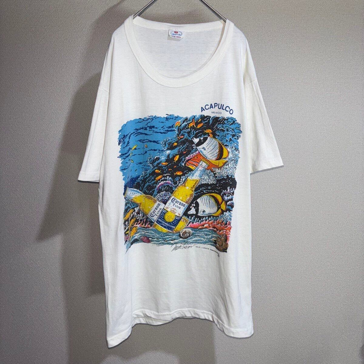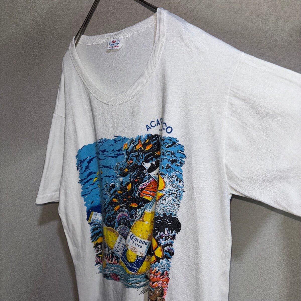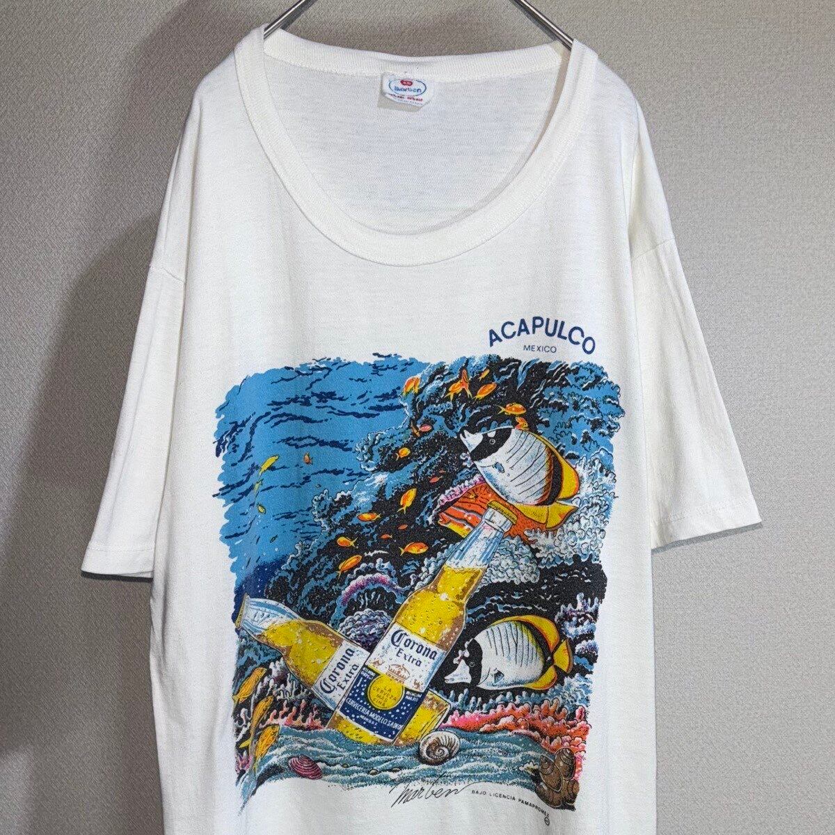 【item】 :Corona コロナビール アカプルコ 白 ホワイト 半袖グラフィックTシャツ
