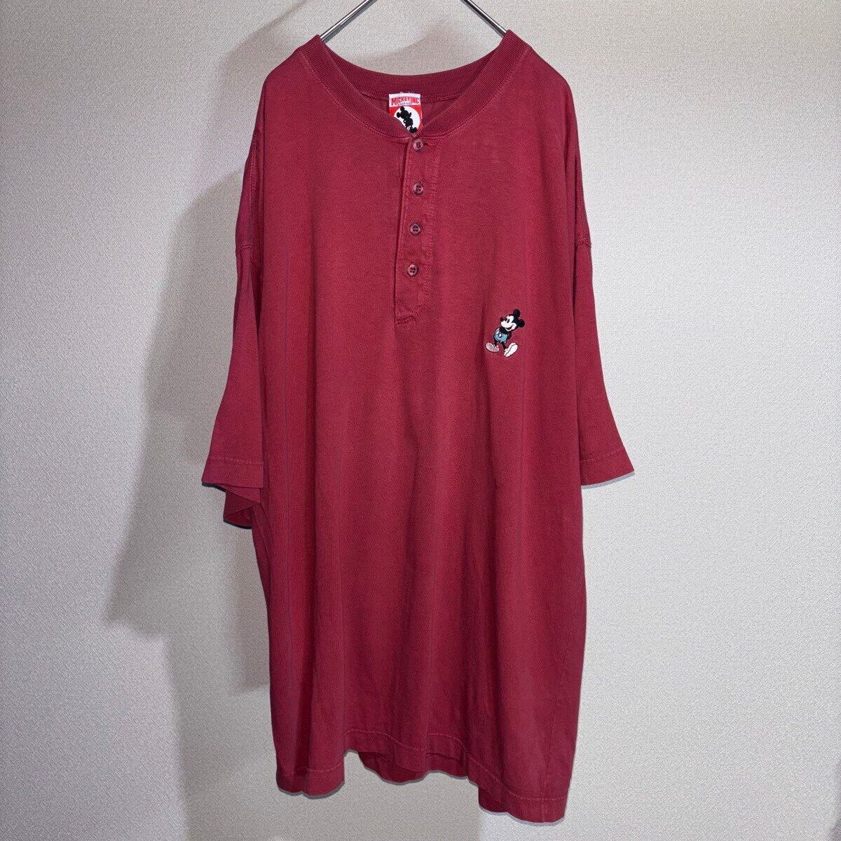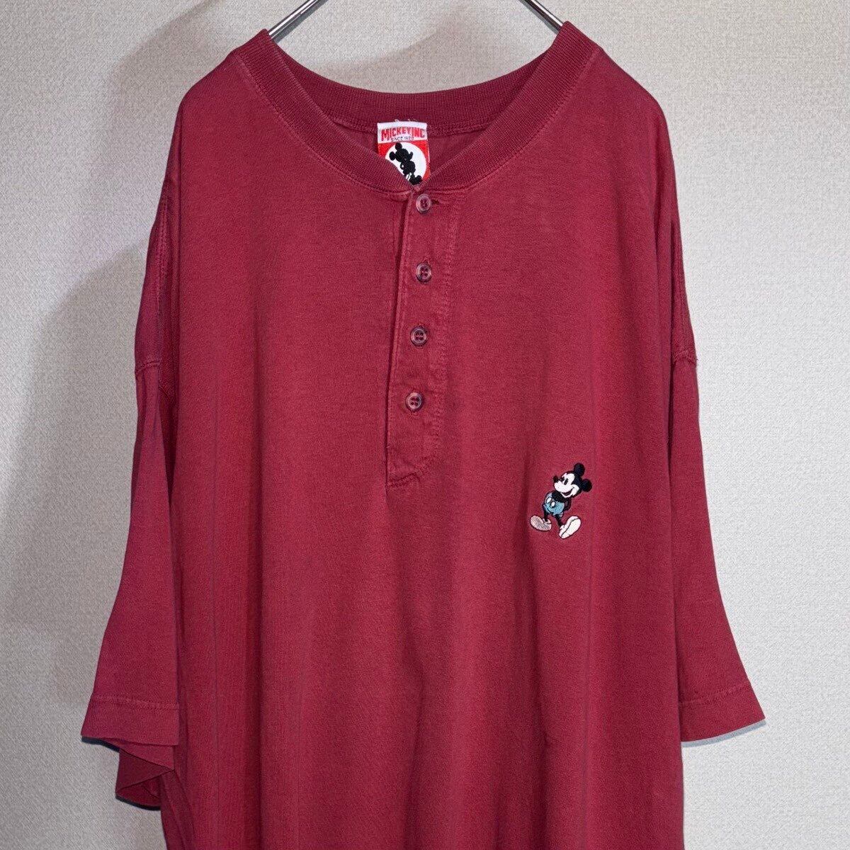 【item】 :Disney ミッキーマウス ヘンリーネックTシャツ 赤 MICKEY.INC