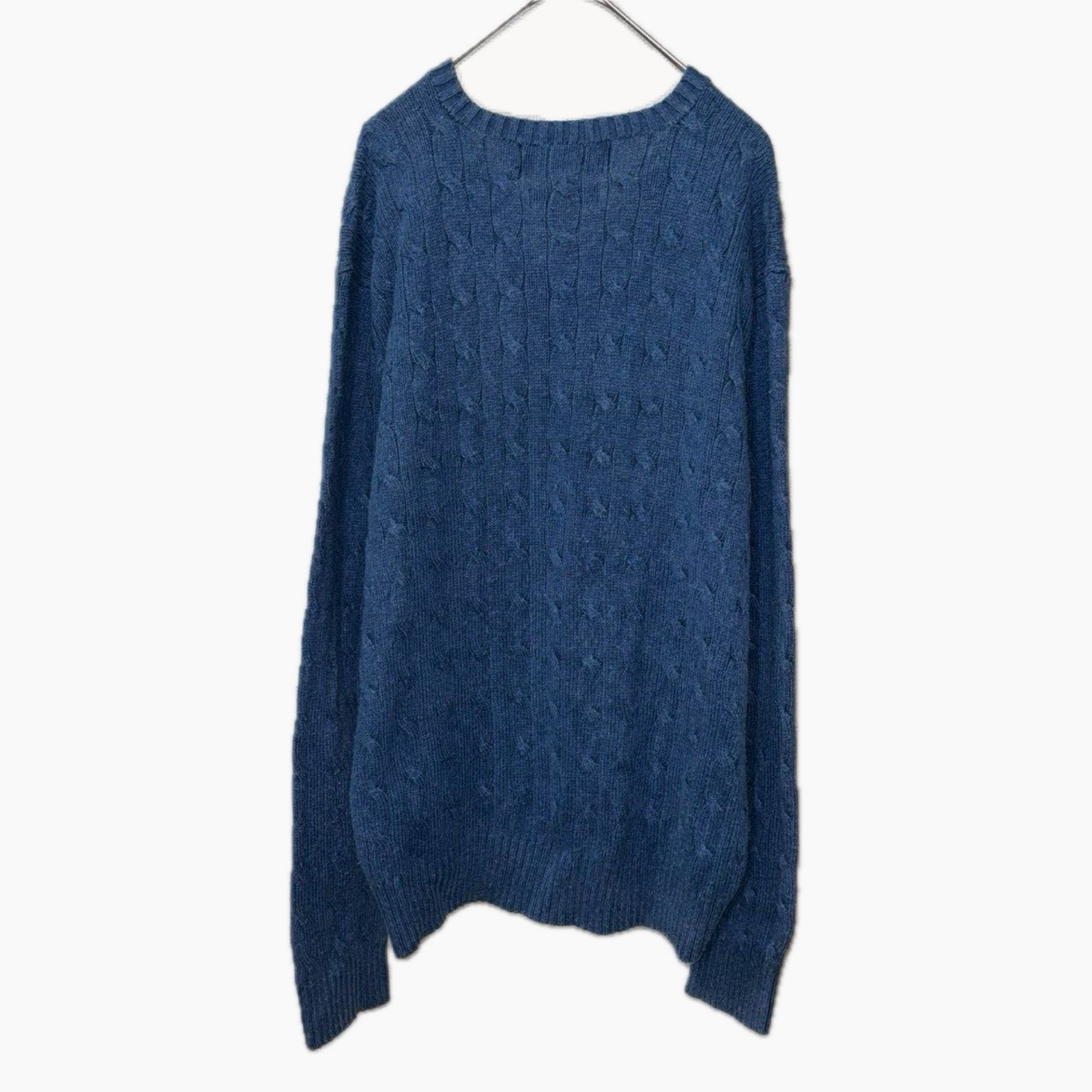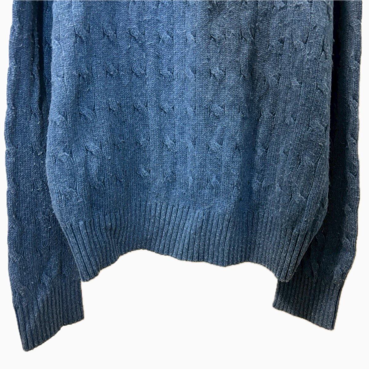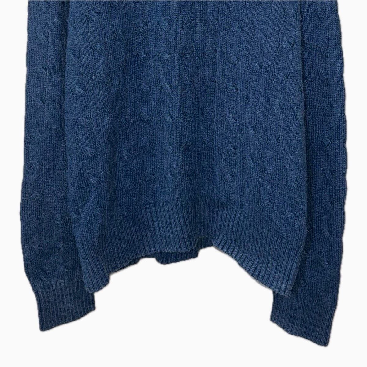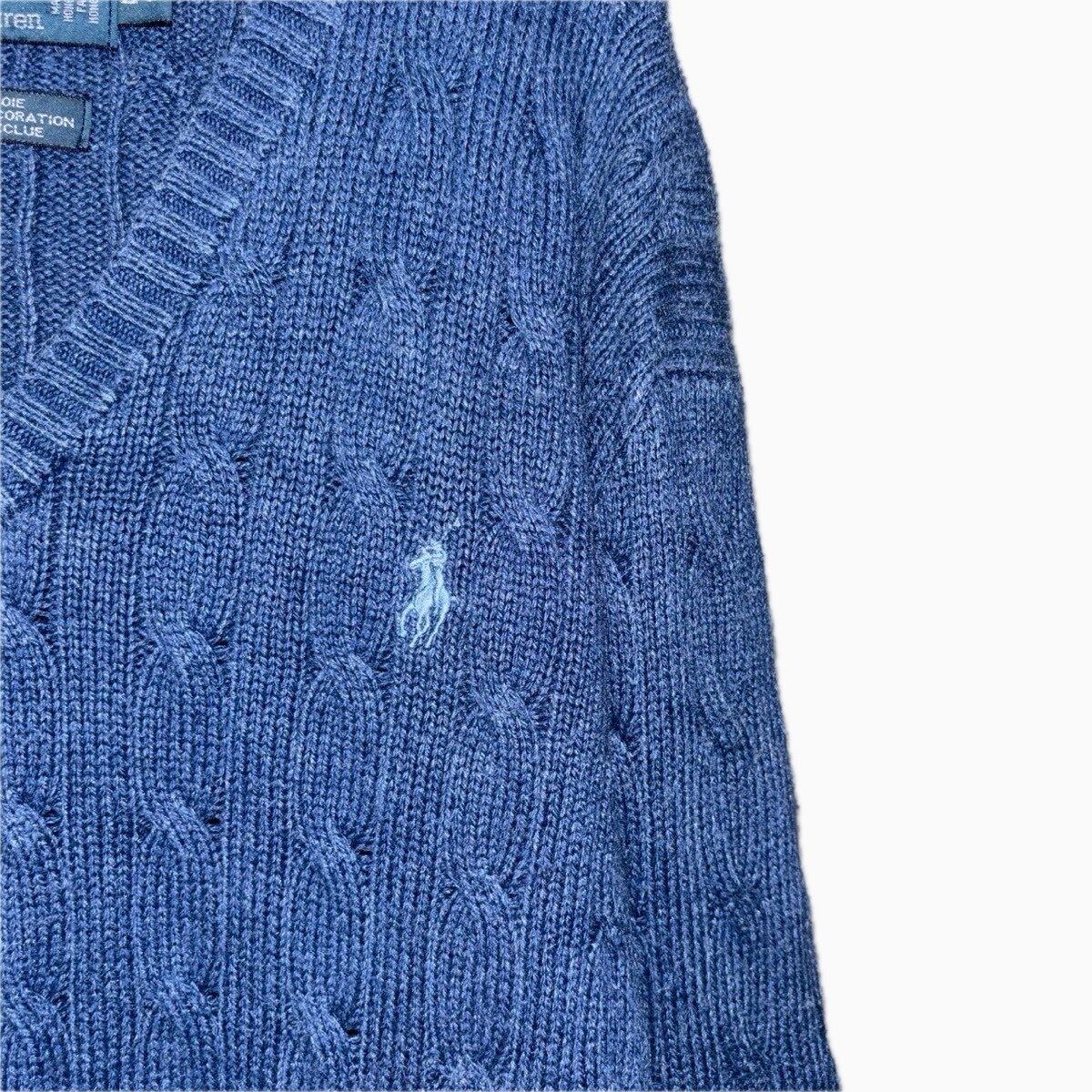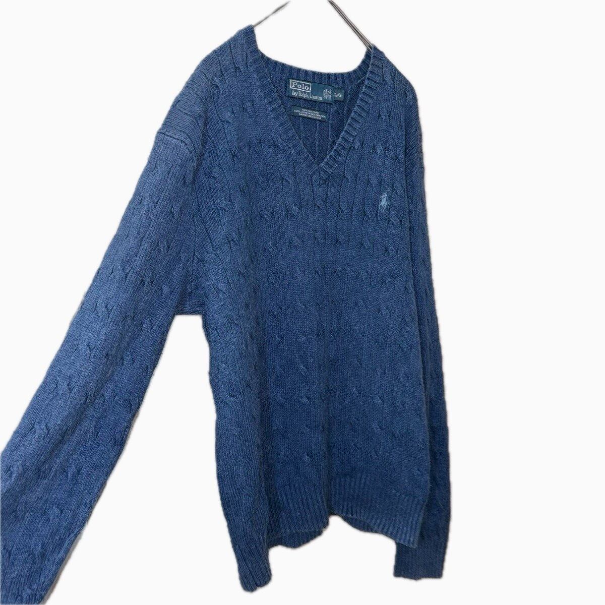 【item】 :ポロラルフローレン ケーブルニットセーター Vネック シルク100% 青 刺繍
